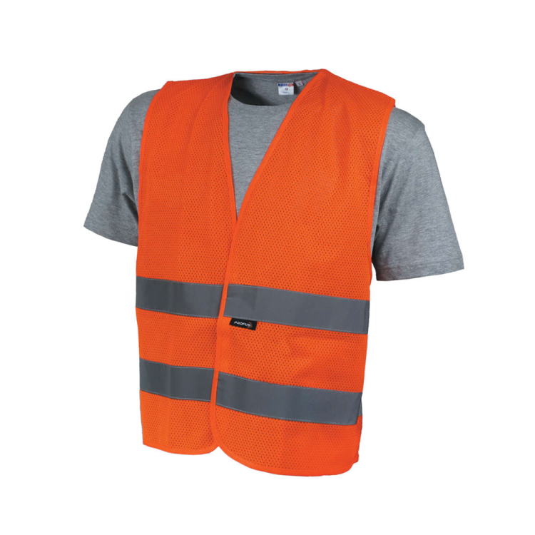 Kamizelka ostrzegawcza została wykonana z poliestru, ma ażurową strukturę, dzięki czemu zapewnia dobrą wentylację i komfort pracy, zachowując jednocześnie wysoki poziom bezpieczeństwa. Zapięcie na rzep pozwala natomiast dopasować kamizelkę do sylwetki.