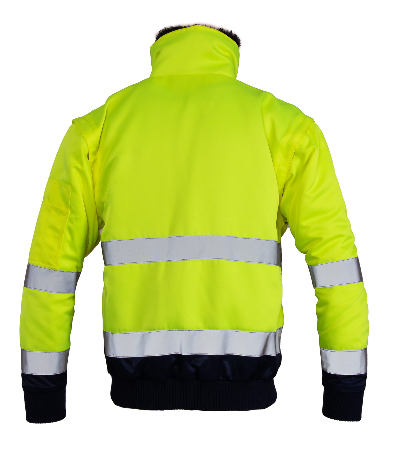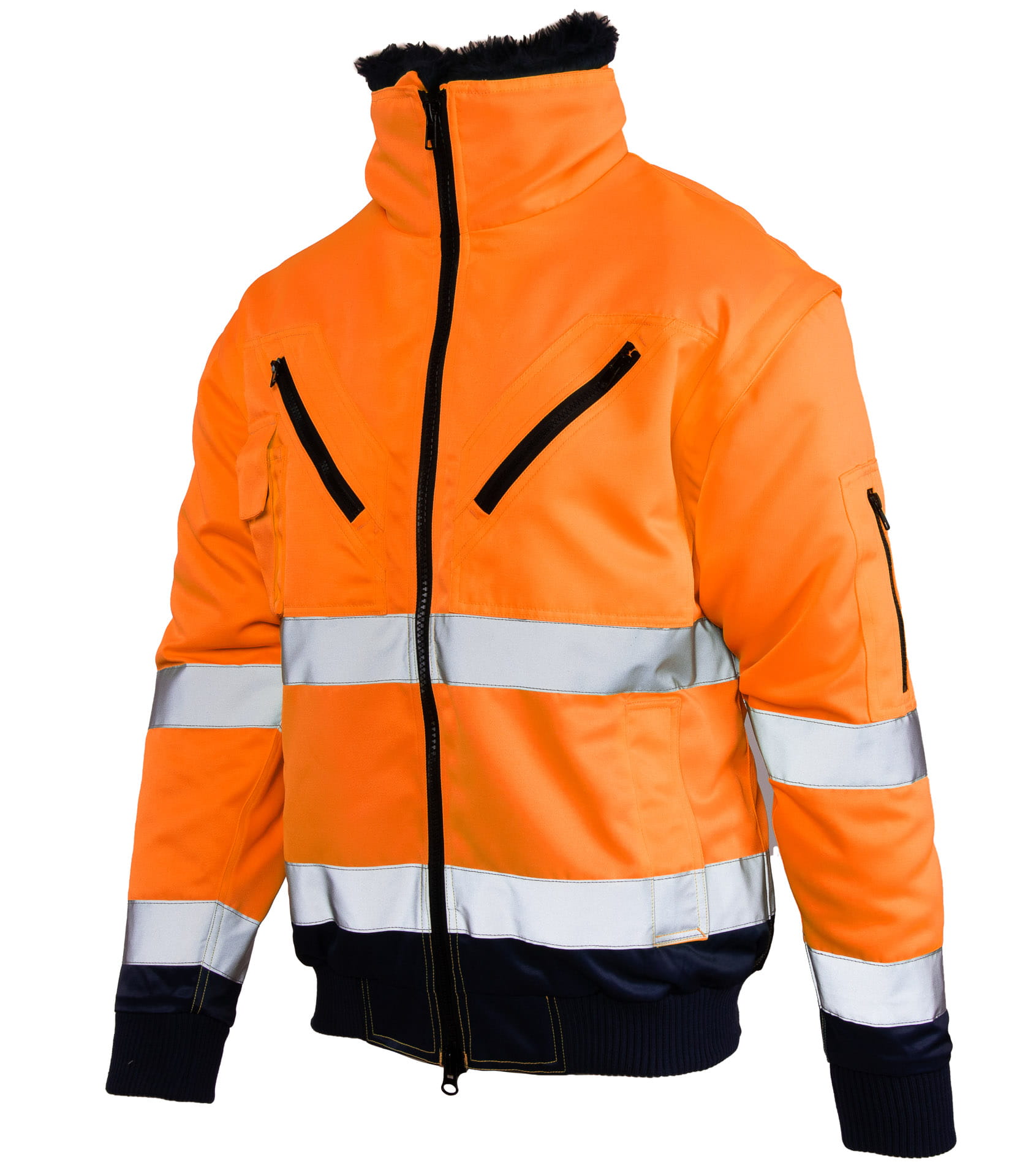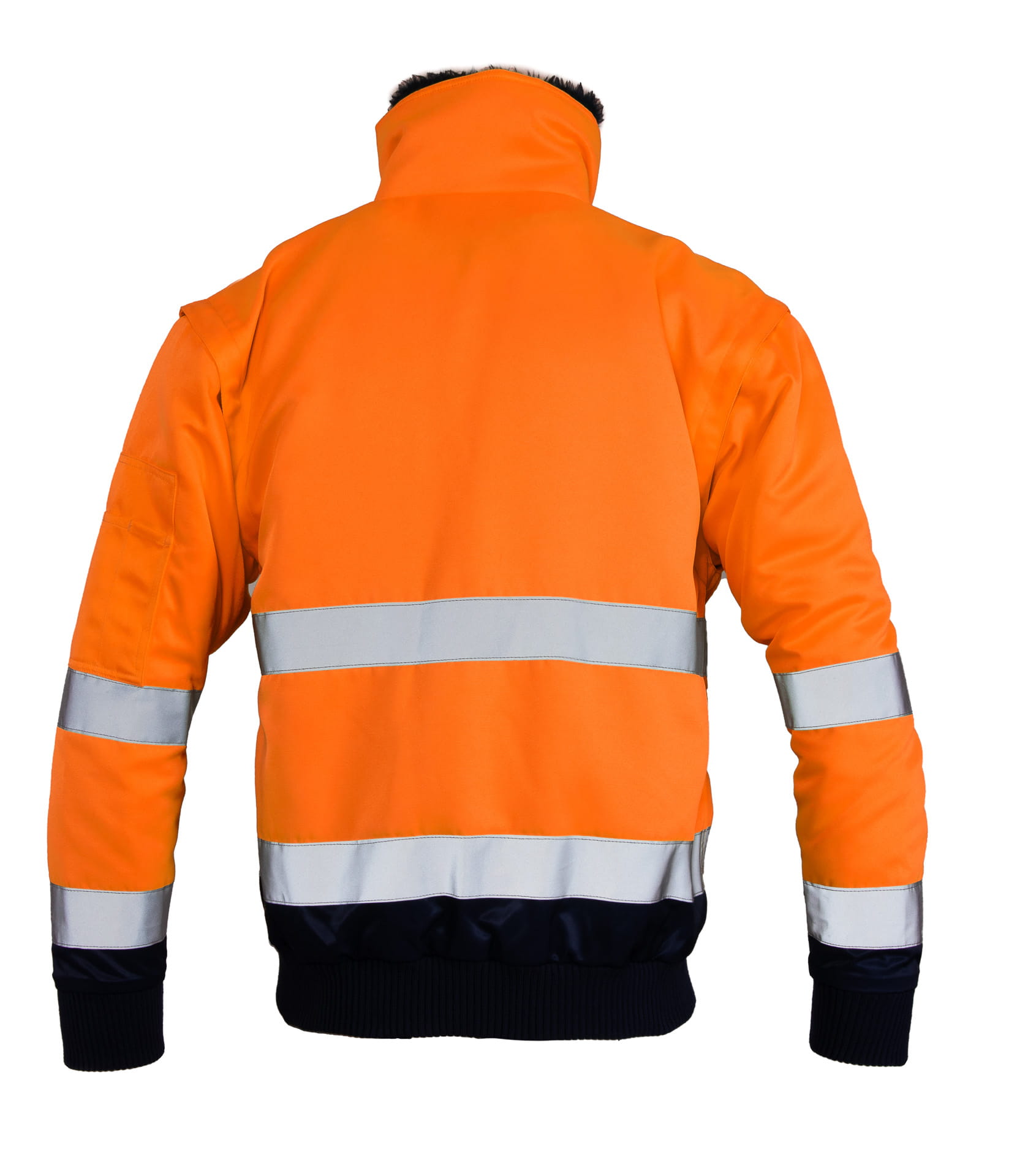 - kurtka typu BOMBER z podwójnymi pasami odblaskowymi,