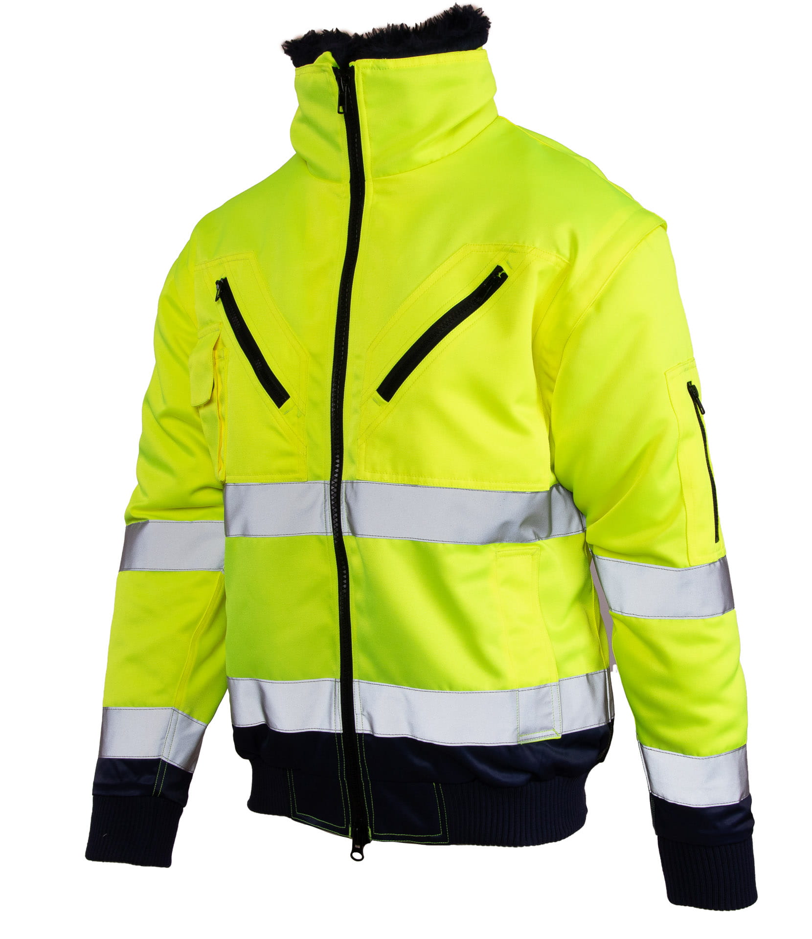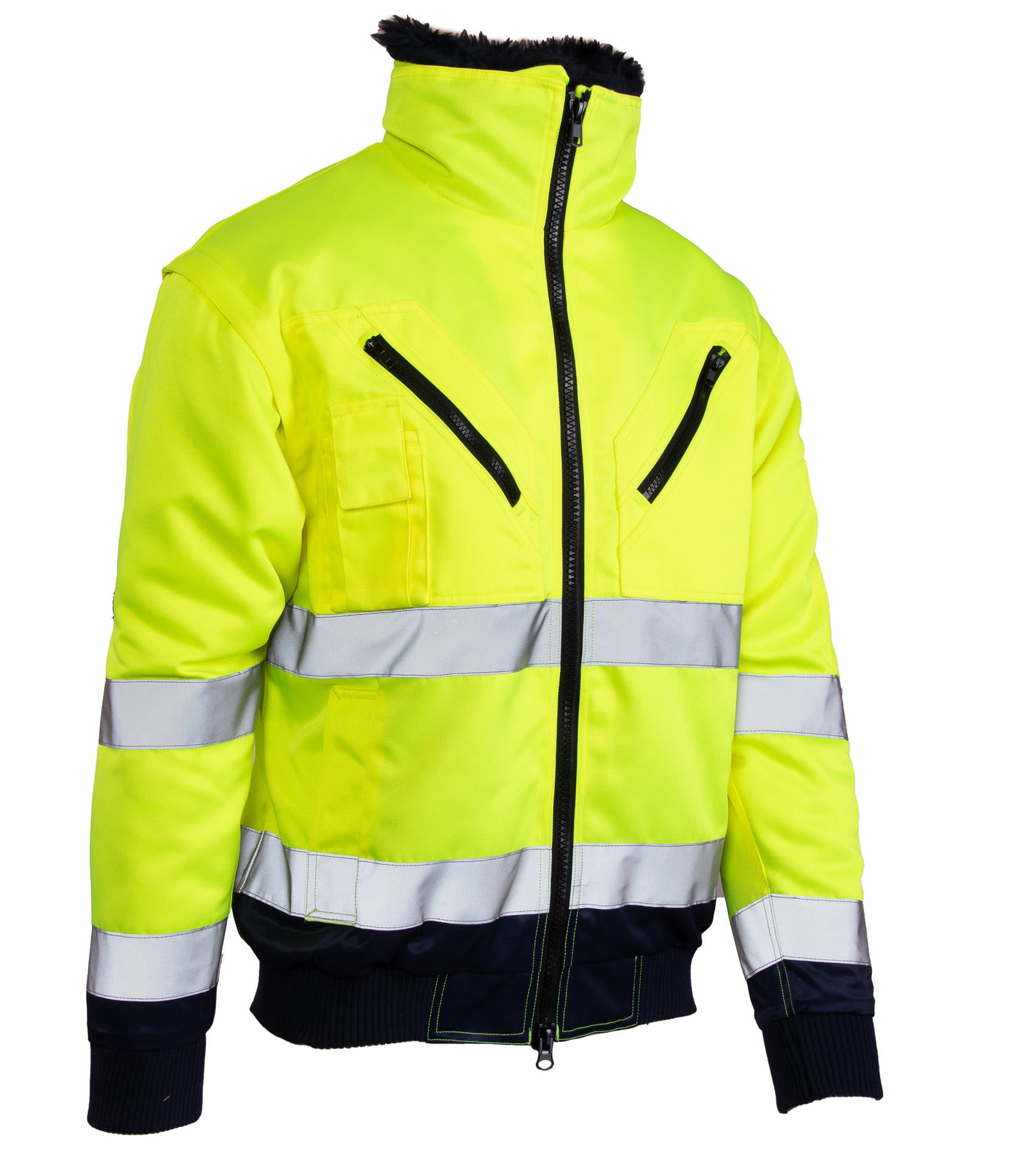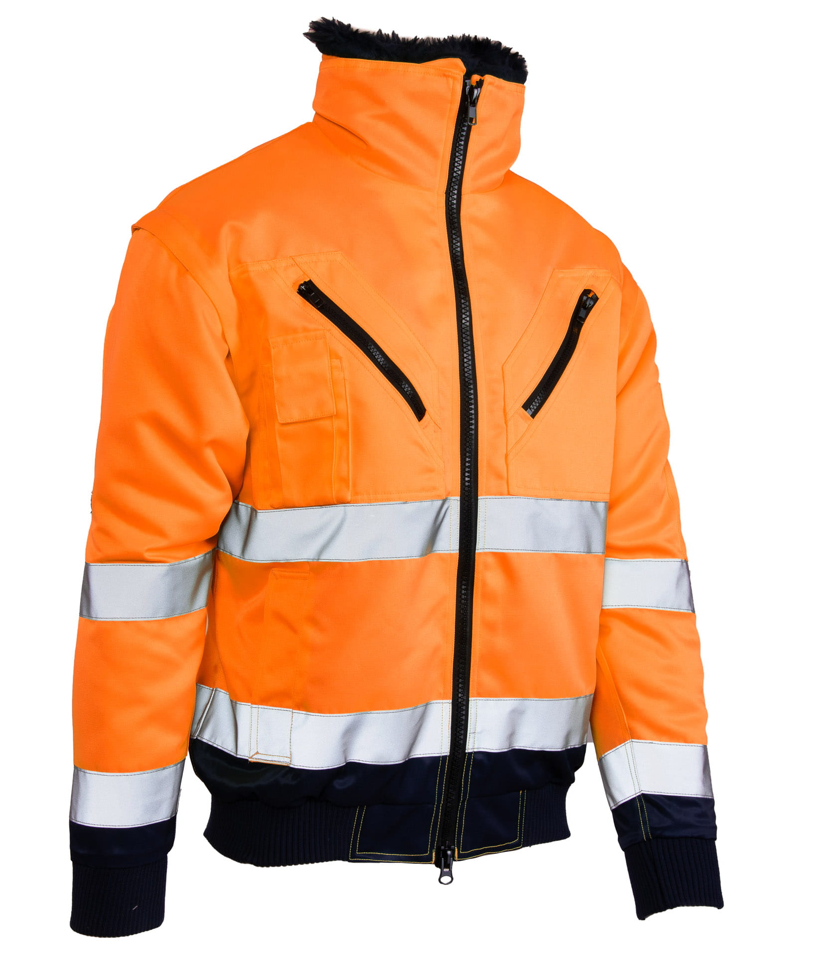 - kurtka typu BOMBER z podwójnymi pasami odblaskowymi,