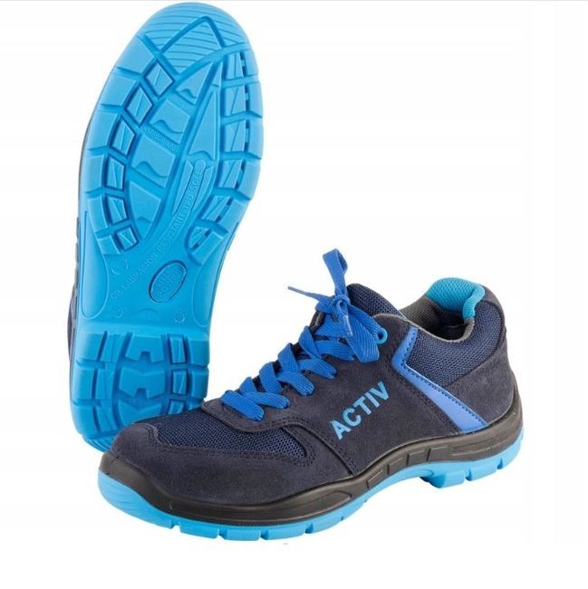 Oryginalne buty robocze Activ w klasie S1. Półbuty bezpieczne z metalowym podnoskiem, właściwości antystatyczne, absorpcja energii w pięcie, podeszwa olejoodporna.