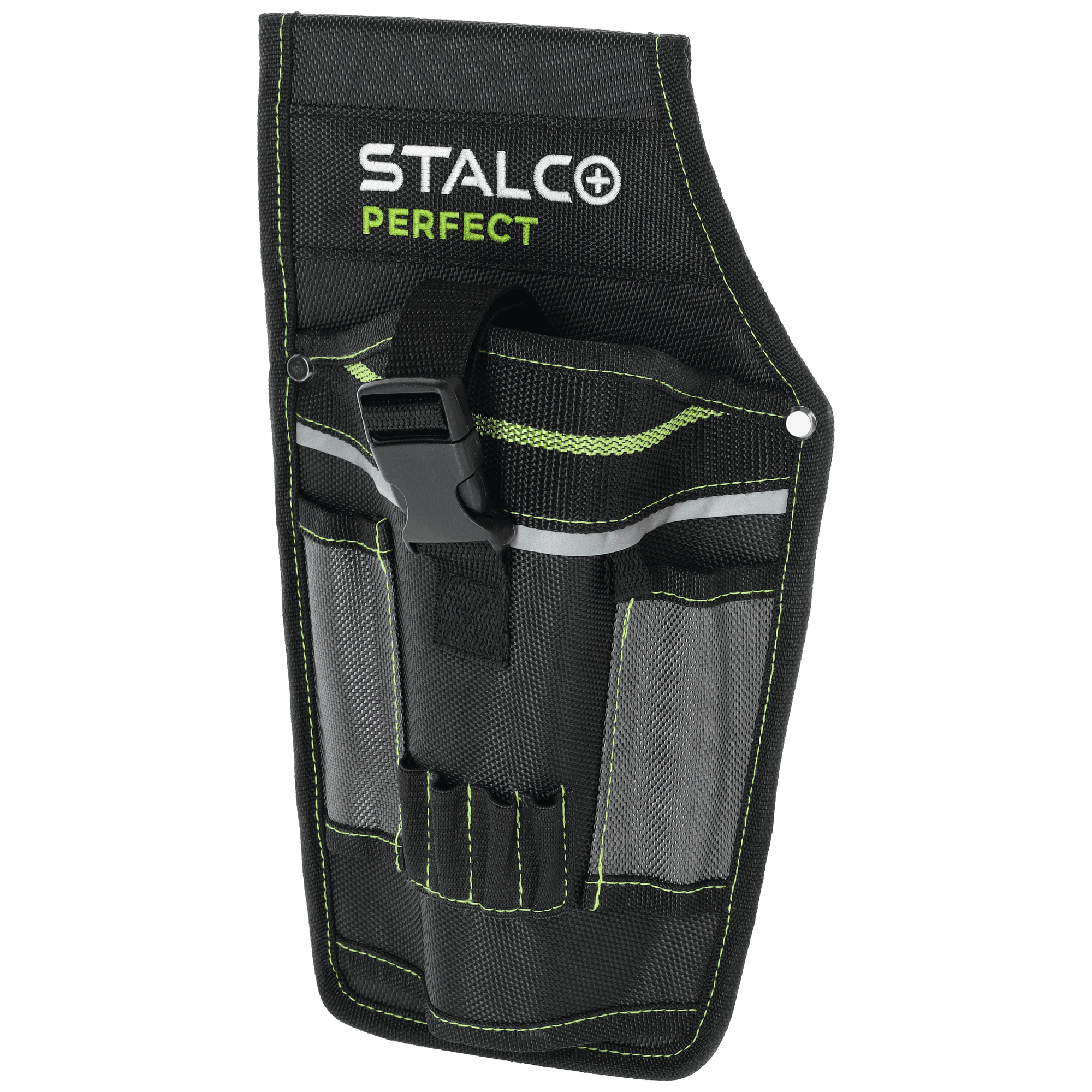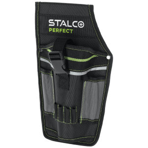Kieszeń narzędziowa "KNP10" jest funkcjonalnym dodatkiem potrzebnym każdemu monterowi. Można zamocować ją do pasa i przechowywać wewnątrz potrzebne narzędzia ręczne i akumulatorowe. Wykonano ją z trwałego materiału poliestrowego o dobrych parametrach wytrzymałościowych. Tkanina nie przeciera się, nie chłonie wilgoci, a dodatkowo jest odporna na zabrudzenia. W tym produkcie znalazło się kilka uchwytów zewnętrznych przeznaczonych na akcesoria monterskie, bity i wkrętaki. Główna komora jest dodatkowo wyposażona w pasek z klamrą, co zapobiega wypadaniu narzędzia podczas wykonywania ruchu. Kieszeń narzędziowa z linii STALCO Perfect ma tunel przeznaczony do przeciągania paska lub pasa monterskiego. Na produkcie umieszczono kilka elementów odblaskowych i kontrastujących, dlatego widoczność pracownika w ciemnych pomieszczeniach ulega poprawie.