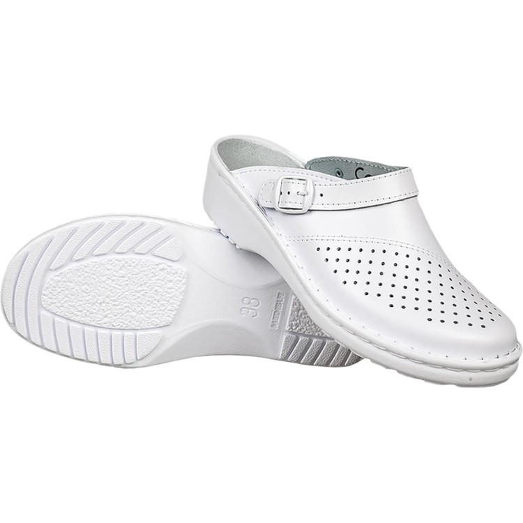 - perforowana cholewka skórzana z odkrytą piętą