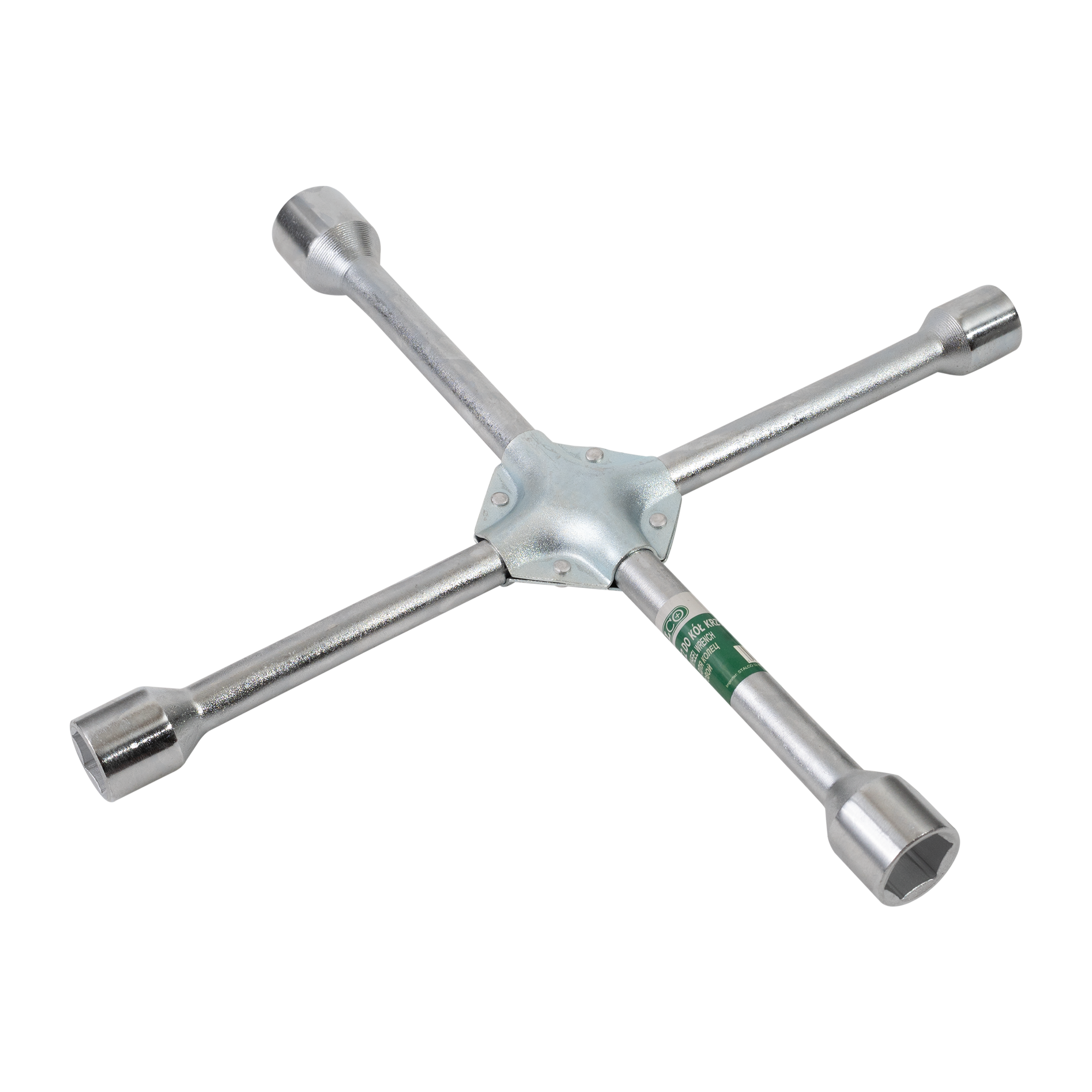 Klucz do kół krzyżowy to narzędzie ręczne przydatne głównie w branży motoryzacyjnej. Można zastosować go do odkręcania i przykręcania śrub. Powszechnie wykorzystywany jest przez wulkanizatorów i mechaników. Dzięki krzyżowej konstrukcji można działać na śruby z większą siłą. Klucz do kół krzyżowy został wykonany ze stali wysokogatunkowej. Zapewnia mu to odporność na uszkodzenia mechaniczne, odkształcenia i inne szkodliwe czynniki. Klucz na końcach ma cztery nasadki o wymiarach 17, 19, 21 i 23 milimetry. Umożliwia to obsługę większości standardowych dużych śrub wykorzystywanych w motoryzacji i budownictwie.