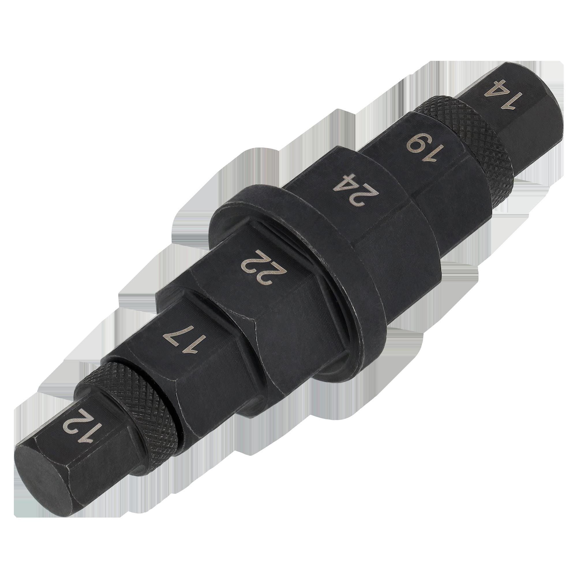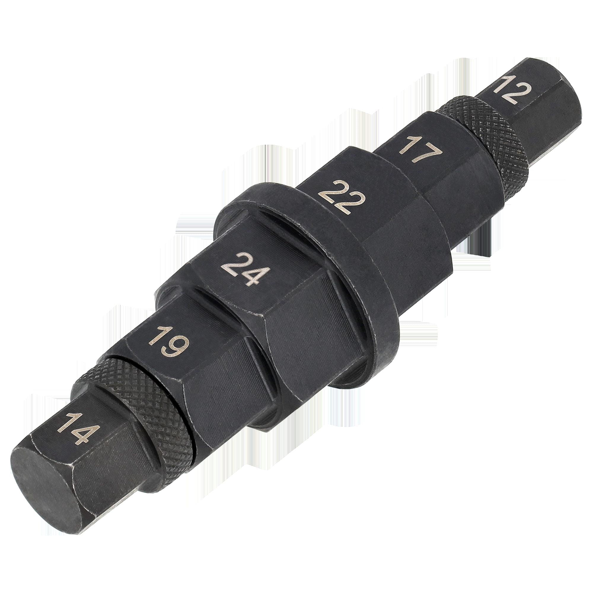 - Doskonałe dopasowanie - 6 rozmiarów w jednym narzędziu, idealnie pasujących do osi motocykli najpopularniejszych marek.