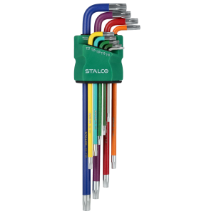 Klucze Torx extra długie z otworem , kolor, T10,15,20,25,27,30,40,45,50, STALCO S2