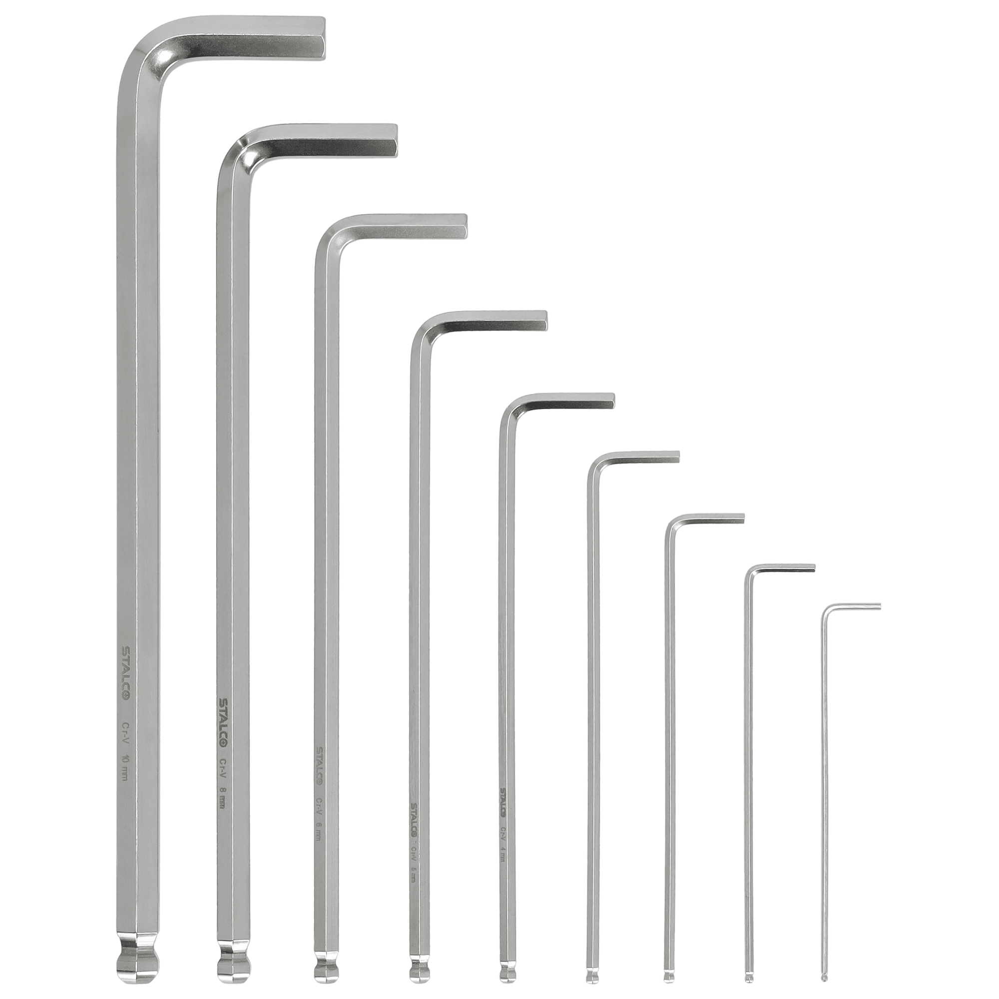Klucze sześciokątne, długie CrV , 9el S-48366