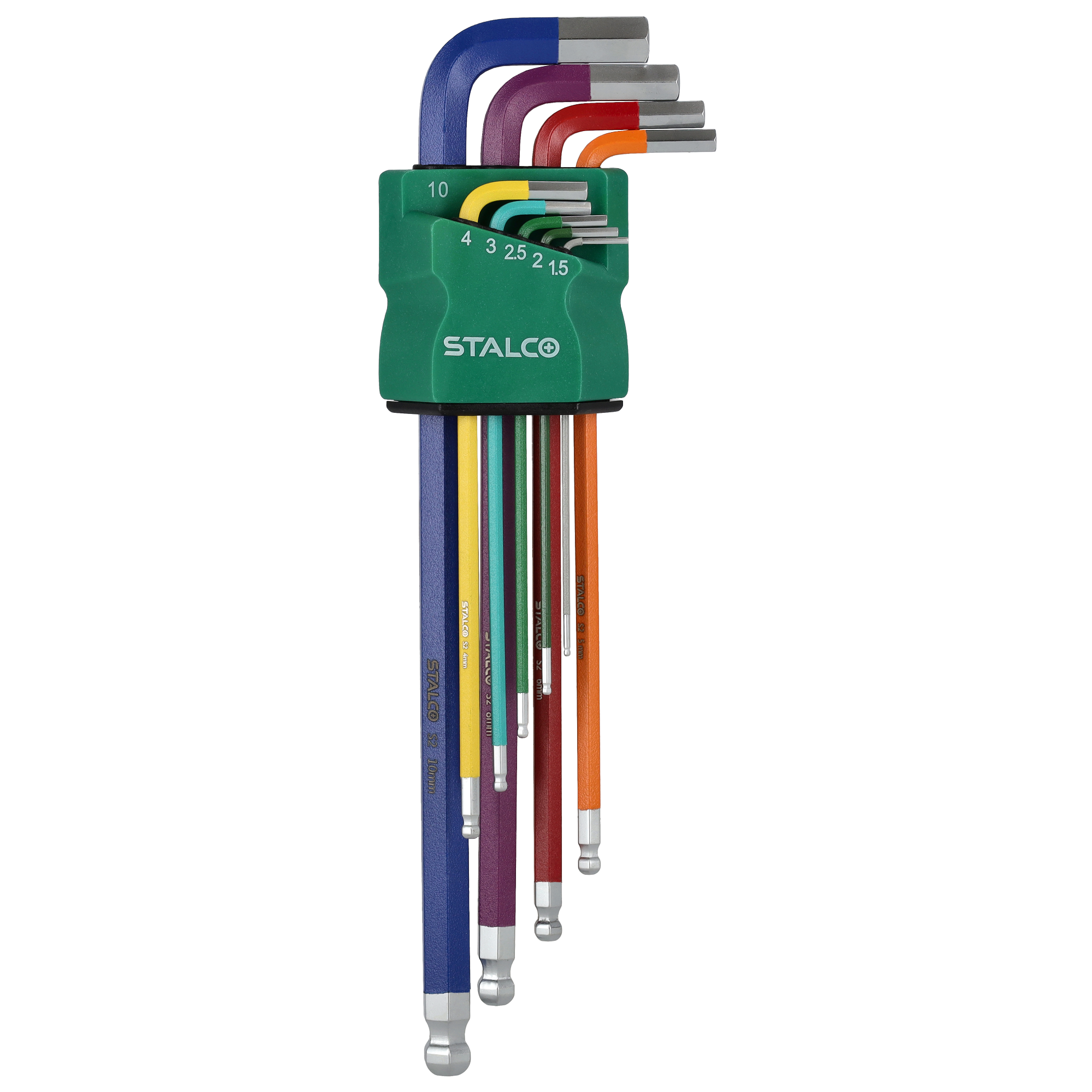 Klucze sześciokątne extra długie z kulką, kolor, 15-2-25-3-4-5-6-8-10mm , STALCO S2,