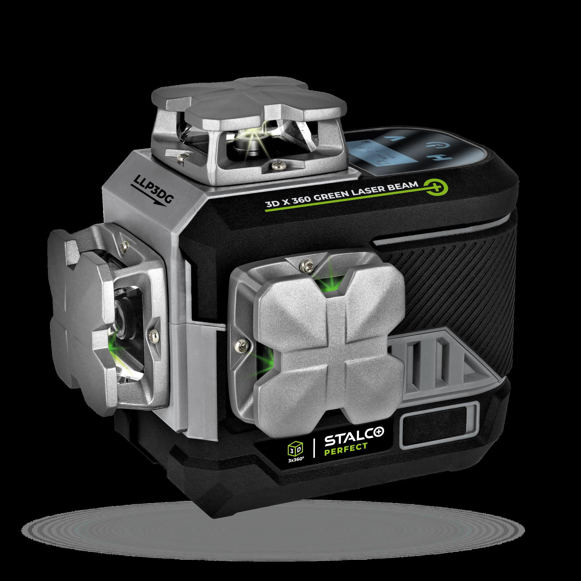 Laser 3D Stalco Perfect LLP3DG to zaawansowany model z zieloną wiązką, który łączy solidną konstrukcję i nowoczesne funkcje z najwyższą precyzją działania. Dzięki zastosowaniu materiałów takich jak kompozyt, aluminium oraz tworzywo TPR, laser cechuje się wyjątkową wytrzymałością i odpornością na trudne warunki pracy. Wygodny wyświetlacz informuje o poziomie naładowania akumulatora, trybie pracy oraz kącie nachylenia urządzenia, co znacząco zwiększa komfort użytkowania.