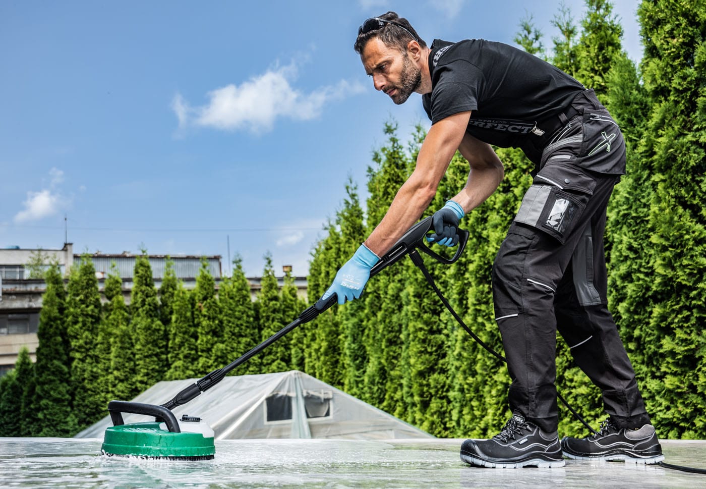 Myjka wysokociśnieniowa HPC170AI w zestawie otrzymała kilka wysokiej jakości końcówek w postaci pistoletu, dysz i szczotki, a także trwały wąż w oplocie. Dodatkowo dołączono adapter do akcesoriów oraz filtr wody.