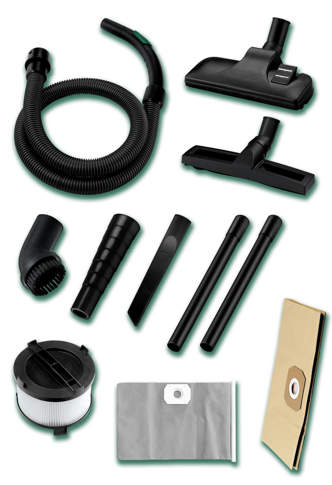 Dzięki gniazdu wyjściowemu 2000W, odkurzacz idealnie współpracuje z elektronarzędziami, oferując funkcję automatycznej synchronizacji, co pozwala na bezproblemowe odkurzanie podczas pracy z urządzeniami. Filtr HEPA skutecznie zatrzymuje drobne cząsteczki pyłów, a wskaźnik poziomu pyłu umożliwia łatwą kontrolę nad stanem napełnienia zbiornika.