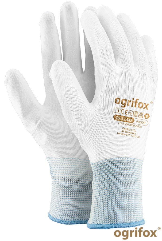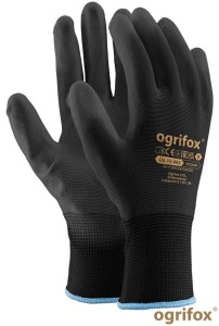 Rękawice ochronne wykonane z poliestru (ścieg 13), powlekane poliuretanem.