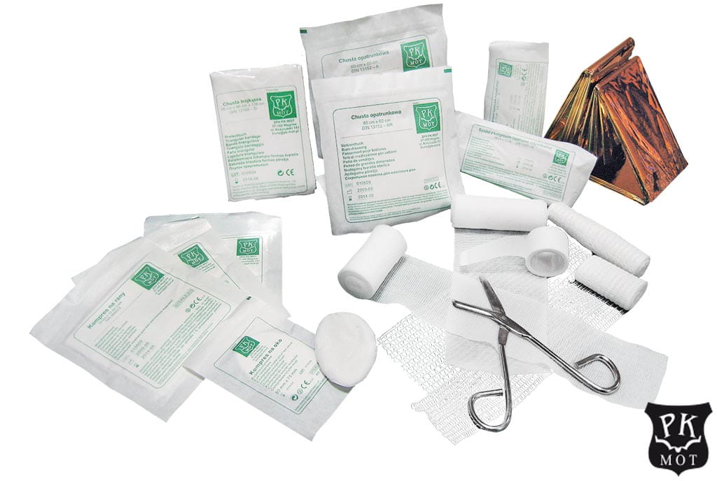 - bandaż z kompresem (opatrunek indywidualny) 10x12 cm (1 szt.)