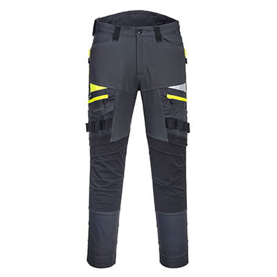 Spodnie robocze DX4 są ergonomicznie zaprojektowane i wykorzystują dynamiczne rozciągliwe tkaniny 4X, aby zapewnić maksymalny zakres ruchów podczas pracy. Spodnie posiadają wysoki stan w pasie z tyłu i są elastyczne z boku zapewniającą ochronę we wszystkich pozycjach roboczych. Wstępnie uformowane i ładowane od góry oraz regulowane kieszenie na nakolanniki, obszerne przednie kieszenie i wielofunkcyjne zapinane na zamek kieszenie na udach zapewniają bezpieczne przechowywanie. Potrójne szwy oferują najwyższą trwałość.