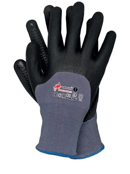 - w części chwytnej i do połowy w części wierzchniej powlekane ultra cienką powłoką spienionego nitrylu typu FOAM w kolorze czarnym