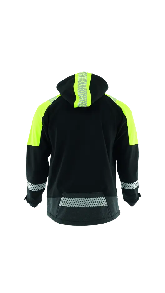 Opis techniczny produktu: » wysoka oddychalność i wodoodporność » dodatek spandexu zapewniający wyjątkową elastyczność i komfort podczas użytkowania » zamek błyskawiczny na całej długości z osłoną podbródka » elastyczne ściągacze rękawów z otworem na kciuk » regulowany i odpinany kaptur z możliwością przymocowania z przodu » dwie kieszenie wsuwane i kieszeń na piersi, każda zapinana na zamek błyskawiczny » regulowany dół z przedłużonym tyłem » otwory wentylacyjne pod pachami, zapinane na zamek » wstawki kolorystyczne hi-vis » taśmy segmentowe o szerokości 5cm zwiększające bezpieczeństwo użytkownika » dolna część tyłu wzmocniona softshellem z rip-stopem Oddychalność 5000 g/m2/24h (mvp) Wodoodporność 8000 mm