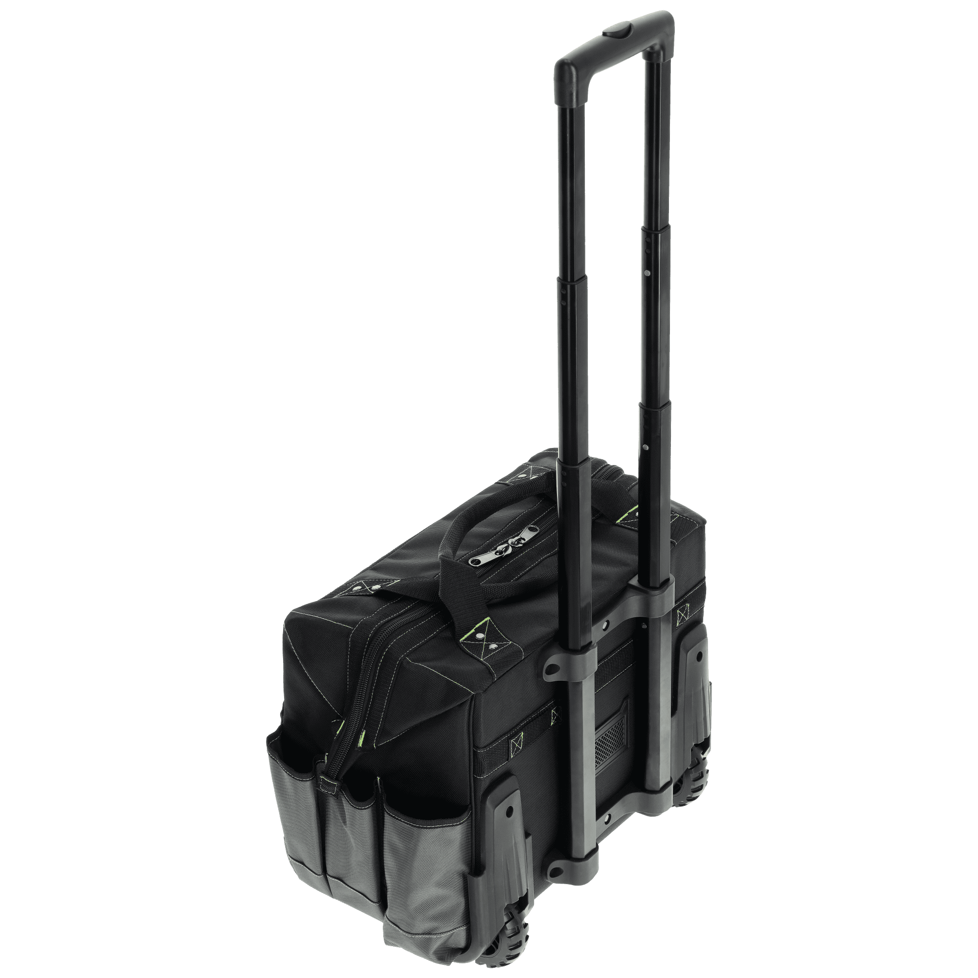 - Wzmocniony, teleskopowy uchwyt z blokadą do holowania torby