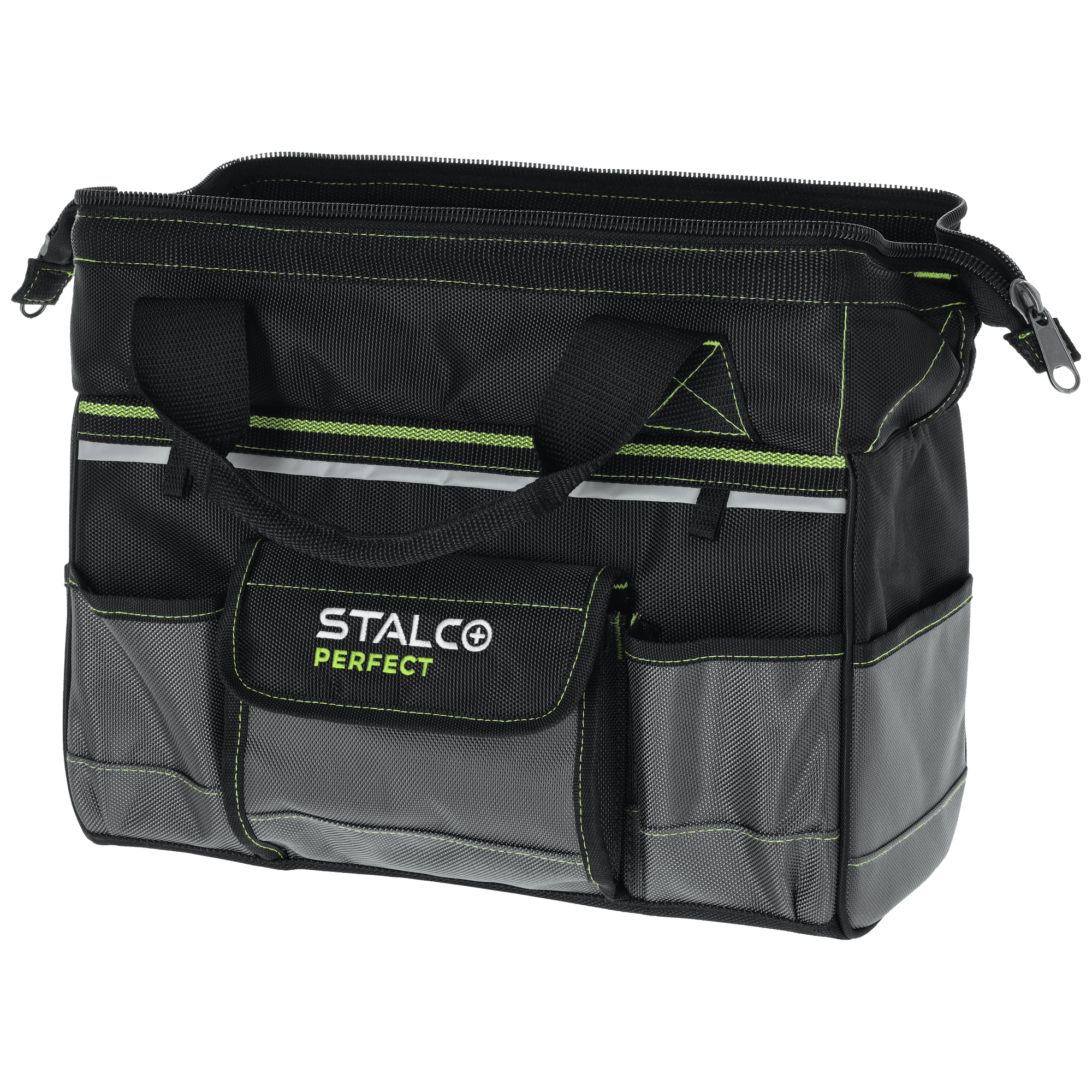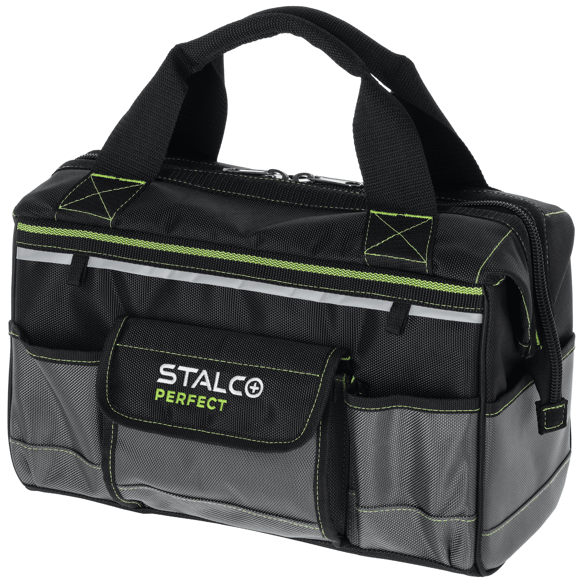 Profesjonalna torba narzędziowa "TNP10S" jest produktem o bardzo uniwersalnym zastosowaniu. Przydaje się do transportu narzędzi i pozwala utrzymać najpotrzebniejsze akcesoria w pobliżu miejsca prowadzenia prac. Sprawdza się przy czynnościach serwisowych, naprawach i innych robotach wykonywanych w terenie. Ma niewielkie wymiary i sztywną konstrukcję, dlatego jest bardzo poręczna. Z kolei sposób jej wykończenia nadaje jej ogromnej funkcjonalności i pozwala na przechowywanie wielu przedmiotów. Wewnątrz toby znalazło się dużo wolnego miejsca. Dla poprawy organizacji umieszczono w środku 6 kieszeni. Komora jest zapinana za pomocą mocnego suwaka, a mocowanie wykonano za pomocą podwójnych szwów. Kolejnych 11 kieszeni umieszczono na zewnątrz na obwodzie. Torbę z linii STALCO Perfect można przenosić za pomocą uchwytu, a jego połączenie z torbą jest dodatkowo wzmocnione. Dla poprawy widoczności zastosowano w niej taśmę odblaskową.