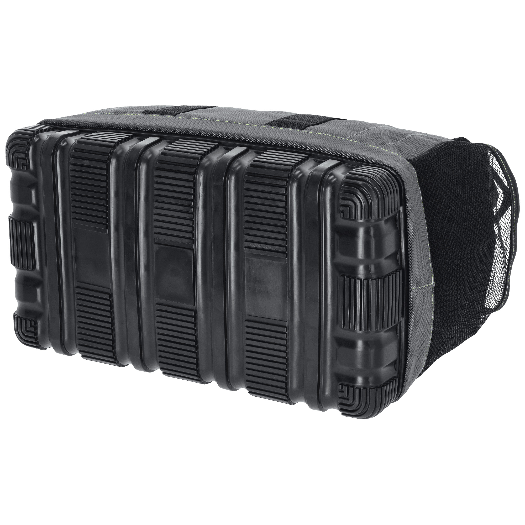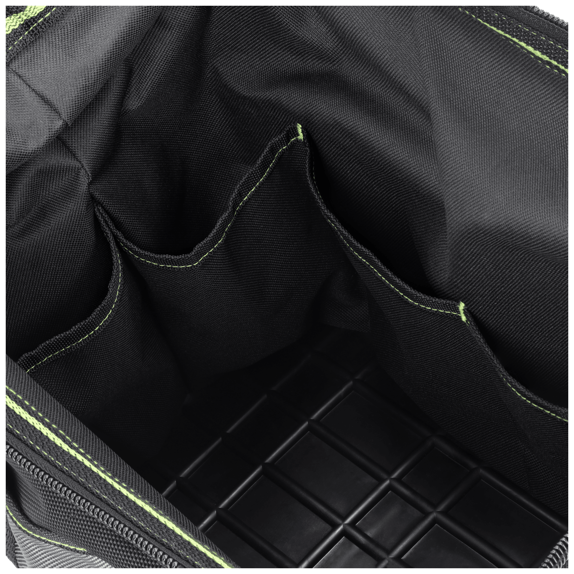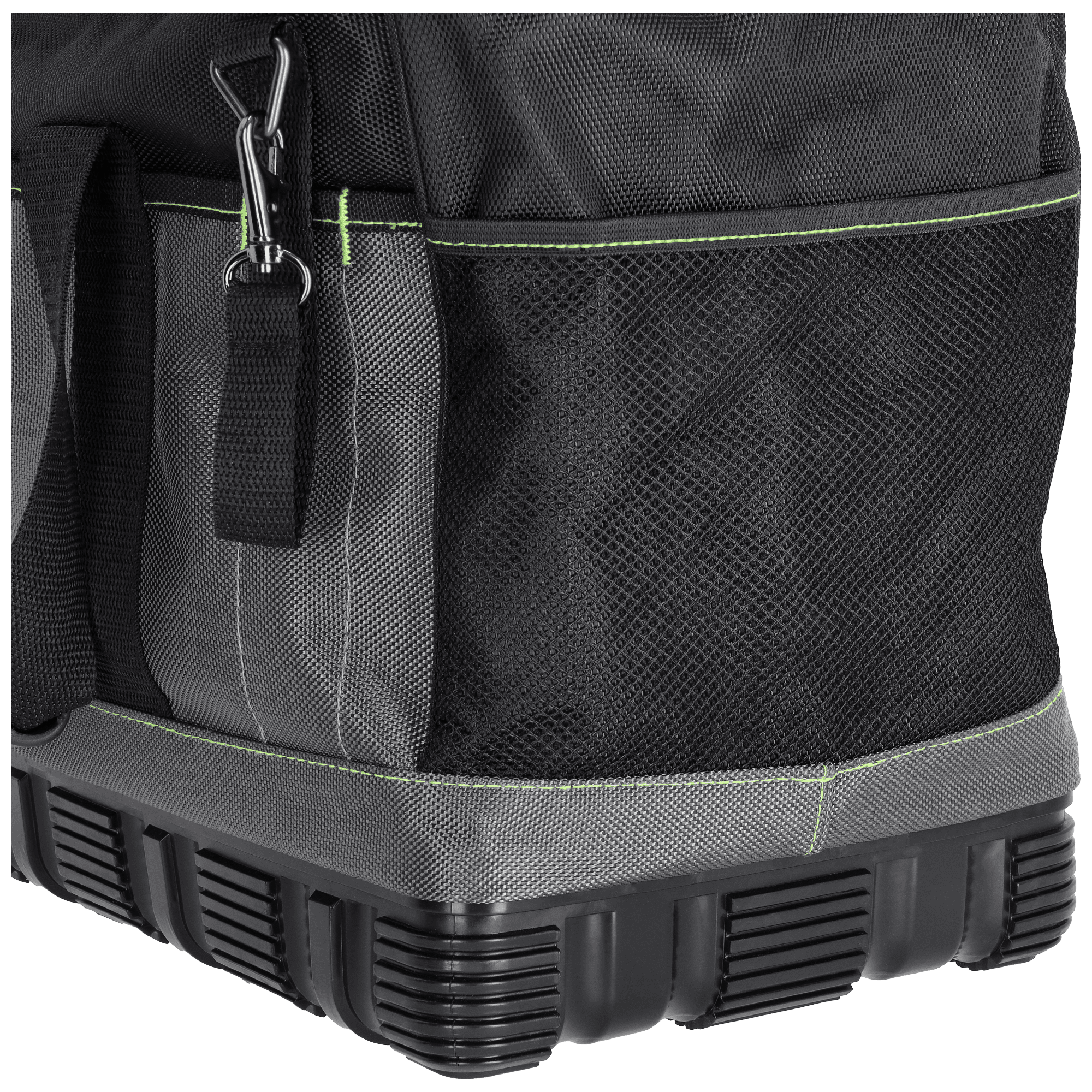 Torba narzędziowa "TNP16" jest produktem przydatnym przy pracy monterów i serwisantów. Została wykonana z myślą o pracy w trudnych warunkach na placu budowy lub w terenie. Głęboki środek ułatwi szczególnie przechowywanie elektronarzędzi . Do jej produkcji zastosowano wzmocniony materiał poliestrowy odporny na przetarcie, pękanie, wilgoć, a także niesprawiający problemów w utrzymaniu czystości. Większą trwałość i żywotność produktu zapewnia mocna plastikowa podstawa. Całość jest zapinana za pomocą solidnego zamka. Torba z linii STALCO Perfect służy do transportu narzędzi i ułatwia utrzymanie ich w porządku. Wewnątrz sztywnej konstrukcji głównej komory znalazło się 8 pojemnych kieszeni. Na zewnątrz umieszczono kolejnych 11 kieszeni, a także klamrę i karabinek na narzędzia. Do transportu torby w dłoniach służy podwójny uchwyt w górnej części. Dodatkowo torba jest wyposażona w regulowany pasek na ramię z wygodną nakładką.