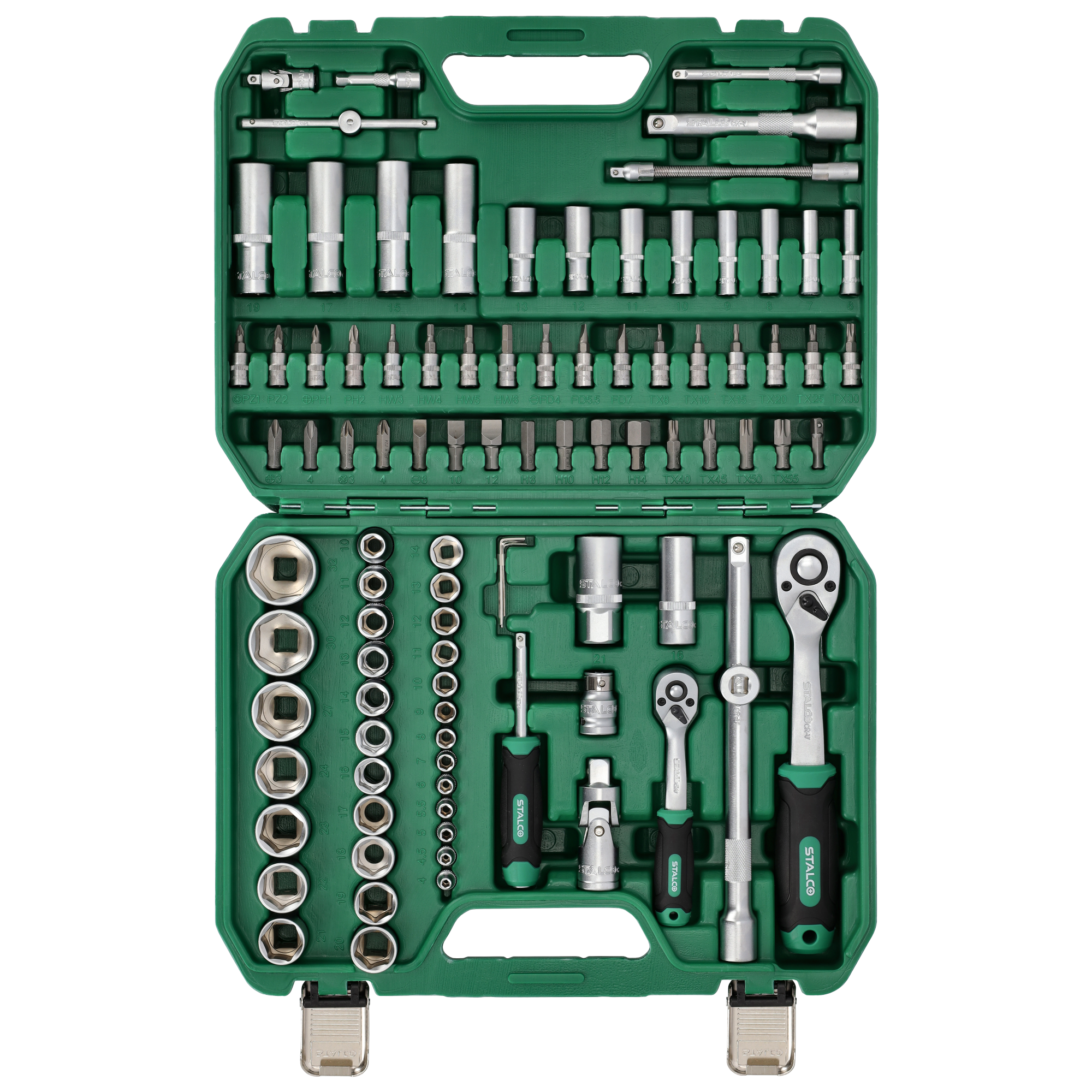 Zestaw kluczy nasadowych STALCO składa się z nasadek z otworami na trzpienie ćwierć- i półcalowe. Czy ich obsługa może być spowodowana przez grzech i wkrętak. W skład wchodzą dodatkowe akcesoria uzupełniające, takie jak przeguby, przedłużki i przejściówki. Wszystkie akcesoria są wykonane ze stali CrV, czyli stopu, który jest dostępny w wersji mechanicznej i bocznej. Do przechowywania ich w prawidłowy sposób walizka z uchwytem i zapinana klamrami. Wewnątrz łatwo dostępne narzędzie jest nawet podczas transportu na miejscu pracy.