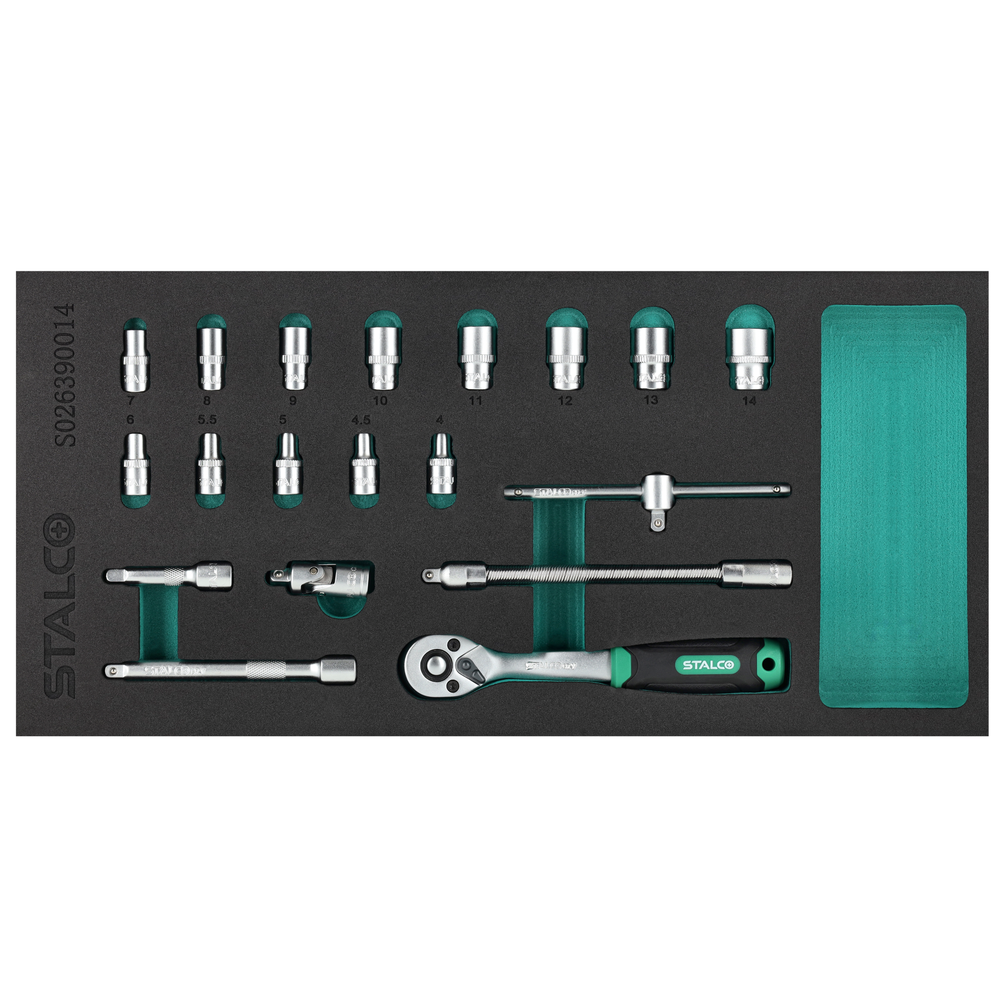 Zestaw kluczy nasadowych 1/4”, 4-14mm, STALCO S026390014
