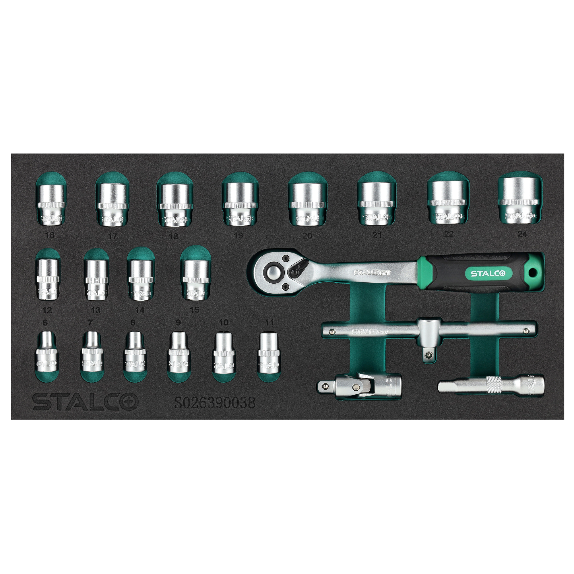 Zestaw kluczy nasadowych 3/8”, 6-24mm, STALCO S026390038
