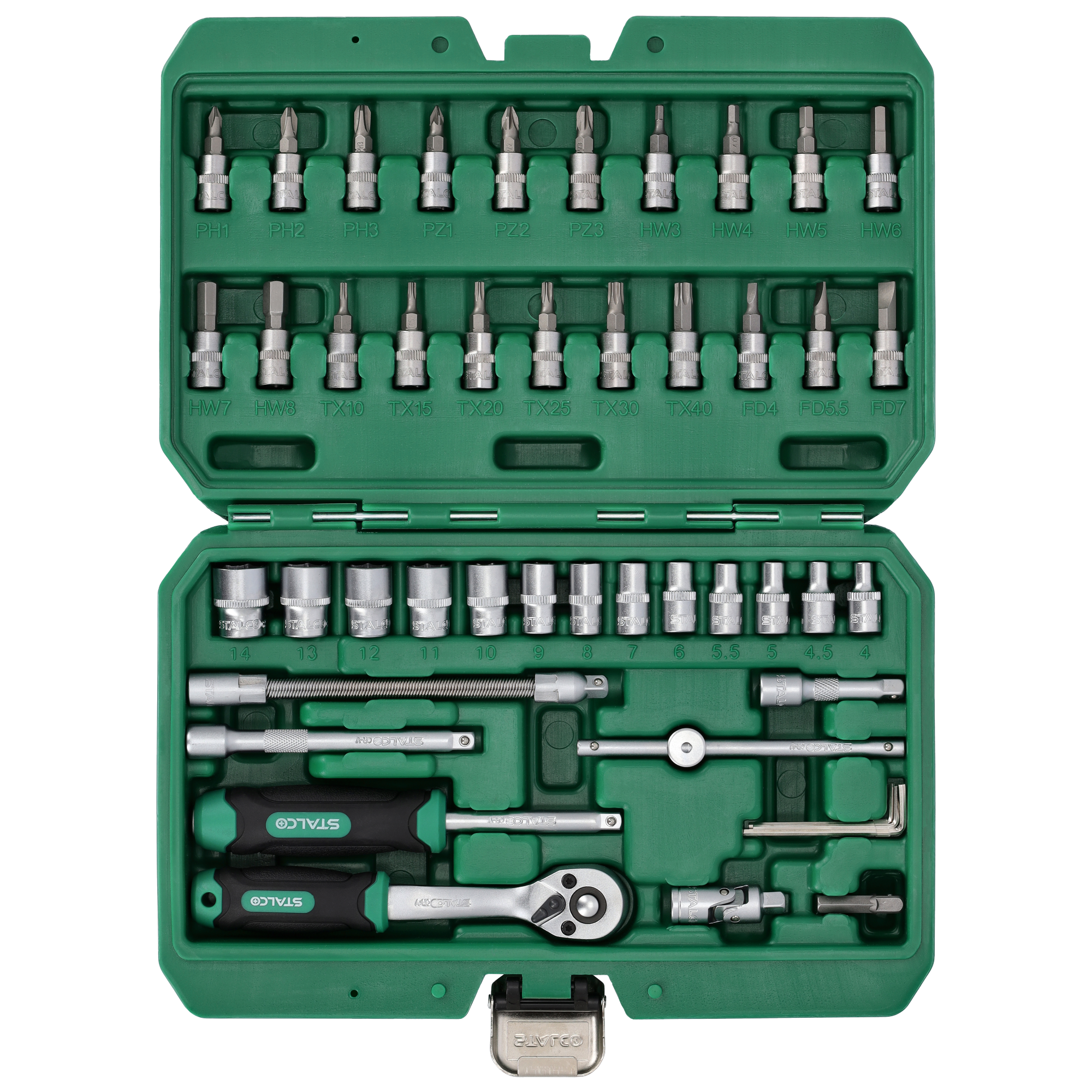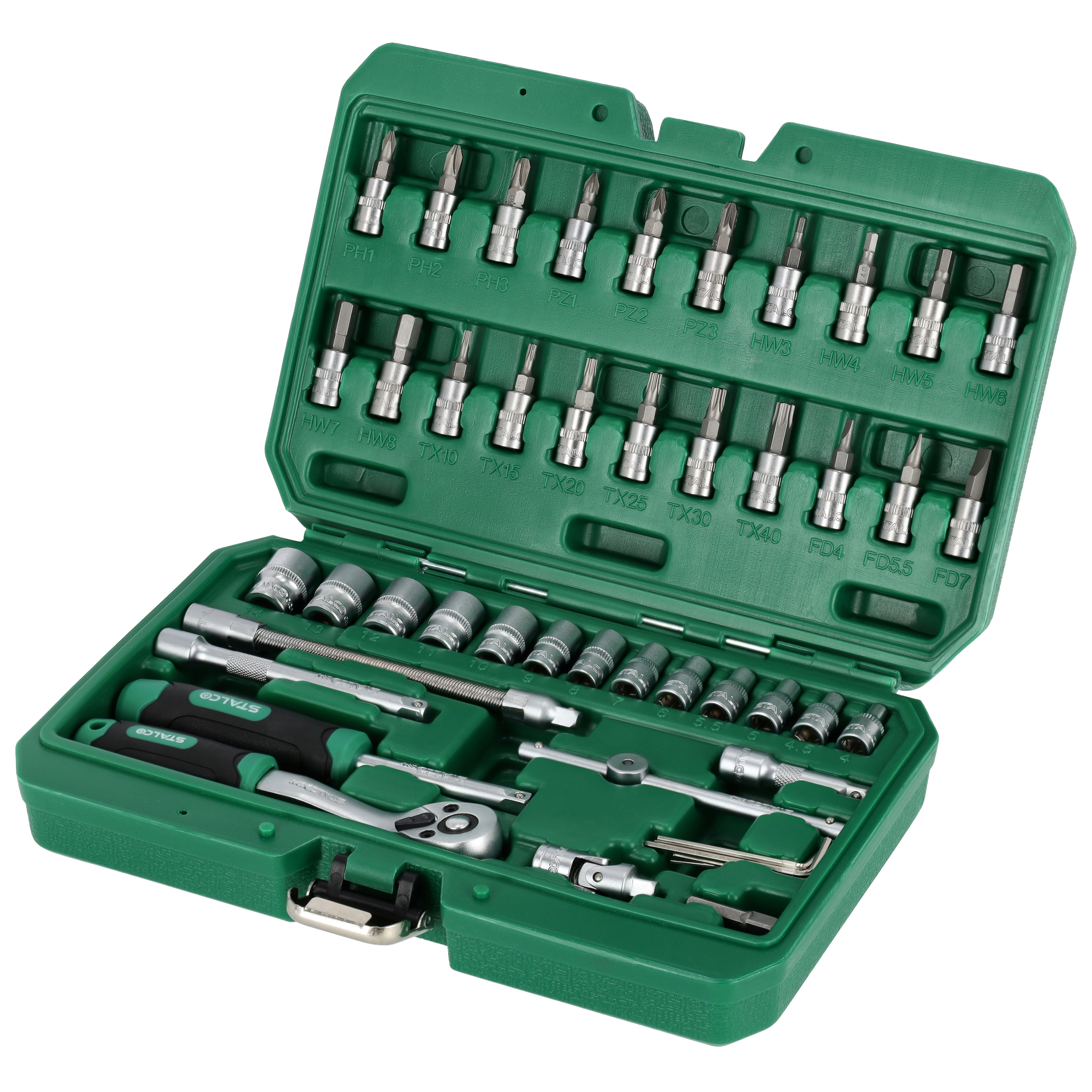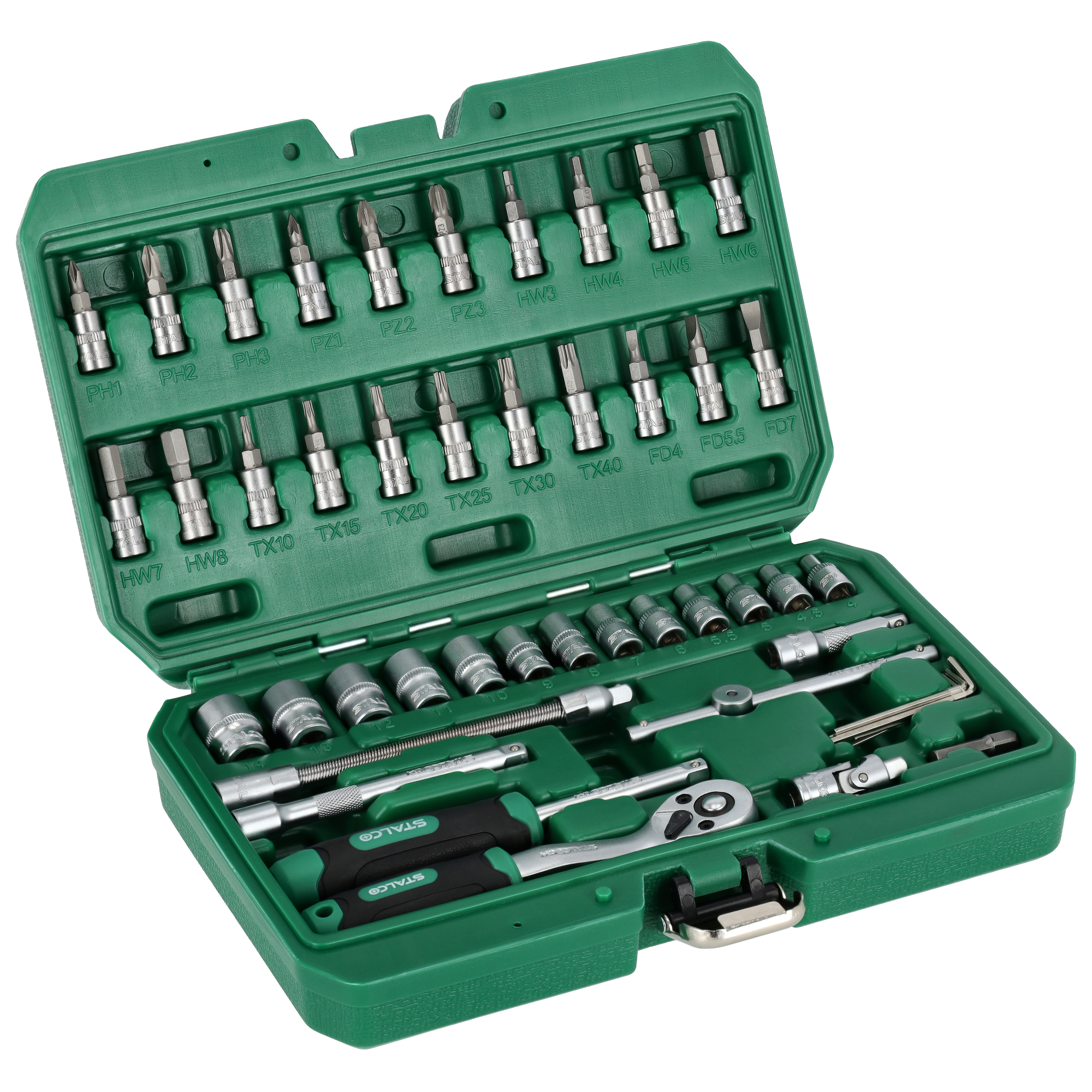 W każdym zakładzie pracy i warsztacie majsterkowicza przyda się zestaw kluczy nasadowych ćwierćcalowych. Znajdują się w nim akcesoria, które są przydatne w czasie prac monterskich, napraw i majsterkowania. Komplet zawiera elementy potrzebne do pracy ze śrubami, nakrętkami, wkrętami i innymi akcesoriami gwintowanymi. Elementy są wykonywane ze stali chromowo-wanadowej, co zapewnia im trwałość i odporność na wiele szkodliwych warunków. Zestaw kluczy nasadowych STALCO zawiera końcówki do śrub i wkrętów różnego typu. Mogą obsługiwać akcesoria o różnych wymiarach daszków, a także wyposażone w standardowe gniazda narzędziowe. Zestaw zawiera też precyzyjną grzechotkę z mechanizmem zapadkowym wyposażonym w 72 zęby. Komplet uzupełniają dodatkowe akcesoria, takie jak przeguby i przedłużki. Cały zestaw kluczy nasadowych jest zamknięty w opakowaniu z tworzywa sztucznego w formie walizki. To ułatwia jego przechowywanie i transport.